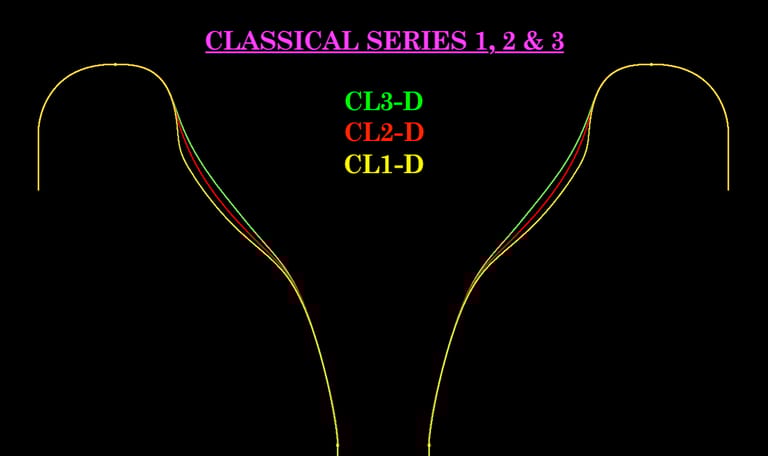 For this reason, we have created our classical series to offer 3 cup shapes that are tailored to different players’ embouchure (CL1, CL2, & CL3), with each cup shape having four different depths available (D, MD, M, MS).