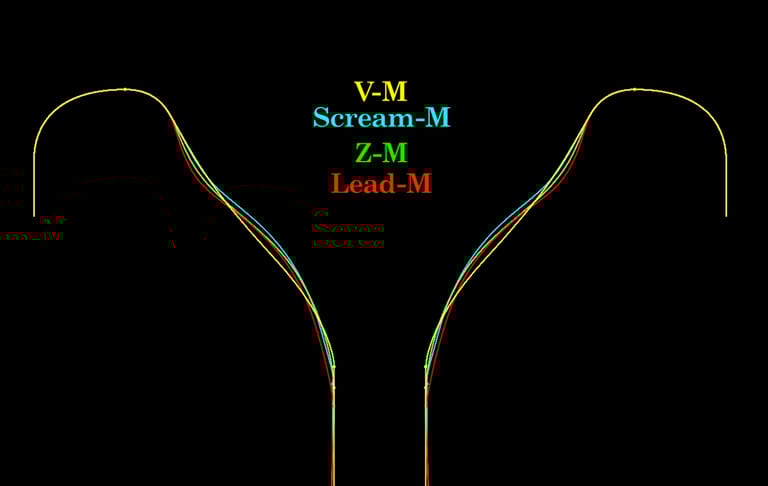 - Different "alpha angles" which can provide support but also can shut of the vibration or produce an awful sound if too high.